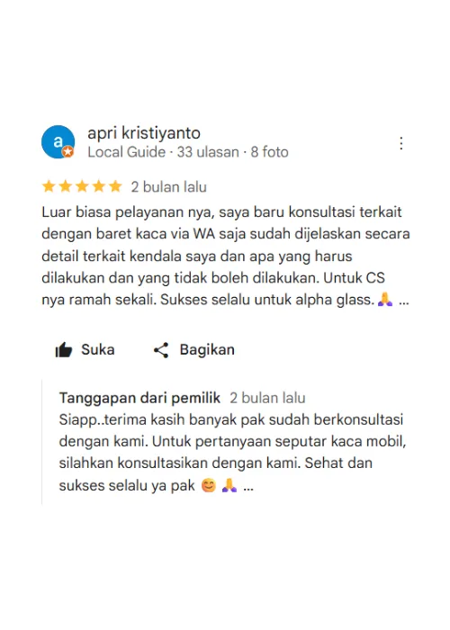 Sebagai bengkel kaca mobil terpercaya, kami memberikan solusi sesuai kondisi kaca Anda: